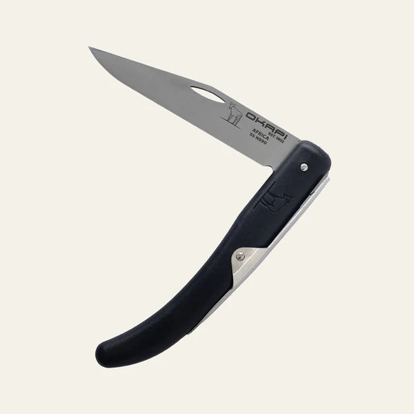 The Okapi folding knife is built for the modern user who values simplicity, durability, and everyday functionality. Whether you're slicing, prepping, or tackling small daily tasks, this folding knife offers the perfect balance of strength and convenience. Its slim profile and pocket-friendly design make it an ideal companion for outdoor adventures, urban carry, or everyday utility.